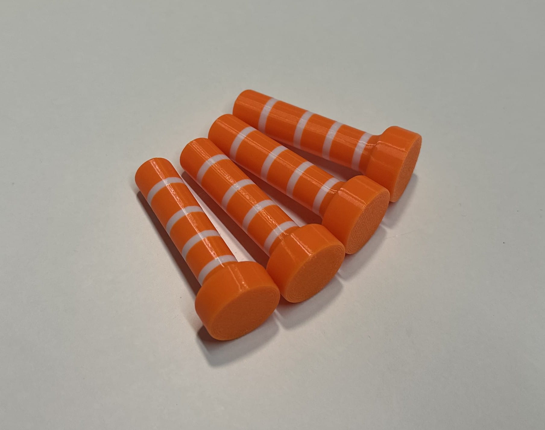 Profesjonalne pionki do poziomowania szafek i innych mebli z użyciem poziomnicy laserowej. Wykonane z wytrzymałego PETG w kolorze pomarańczowo-białym, odporne na odkształcenia i uszkodzenia. Cztery paski na wysokościach 12, 20, 28 i 38 mm umożliwiają szybkie dopasowanie do różnych grubości blatów.