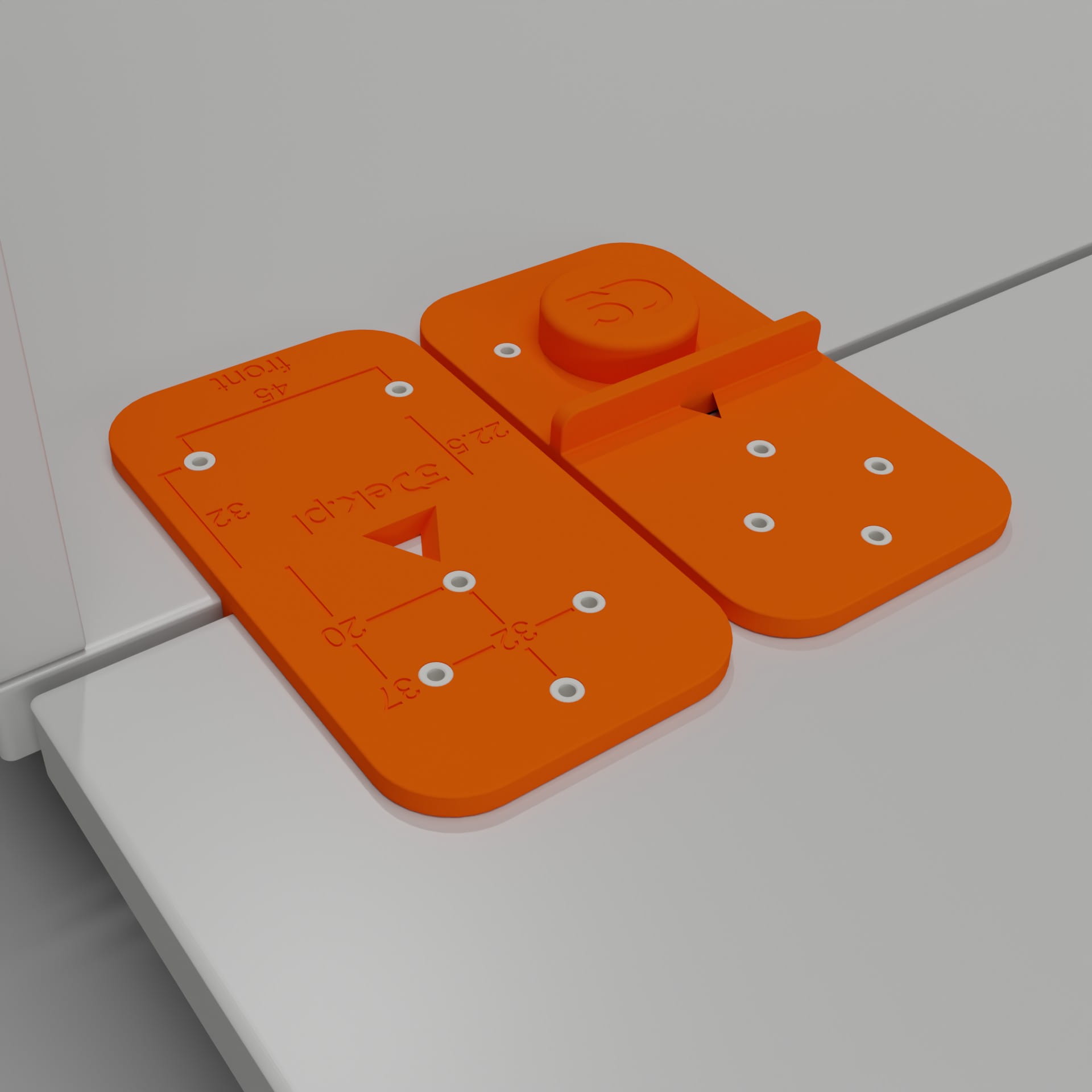 Szablon montażowy do prowadników i zawiasów nakładanych