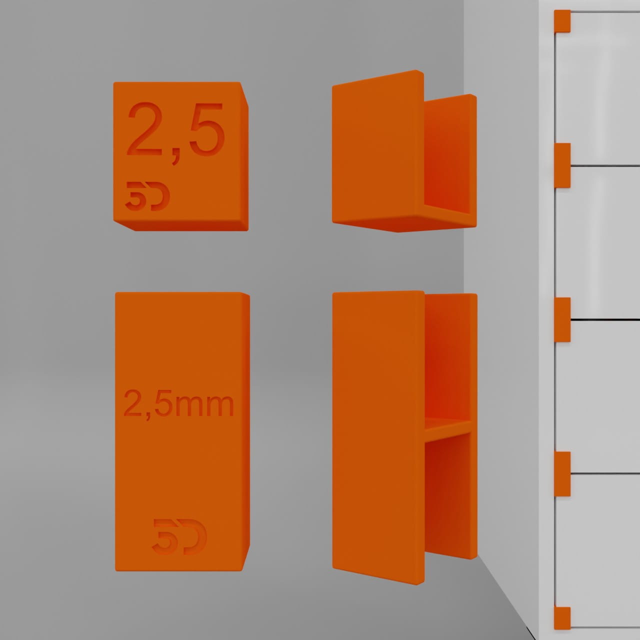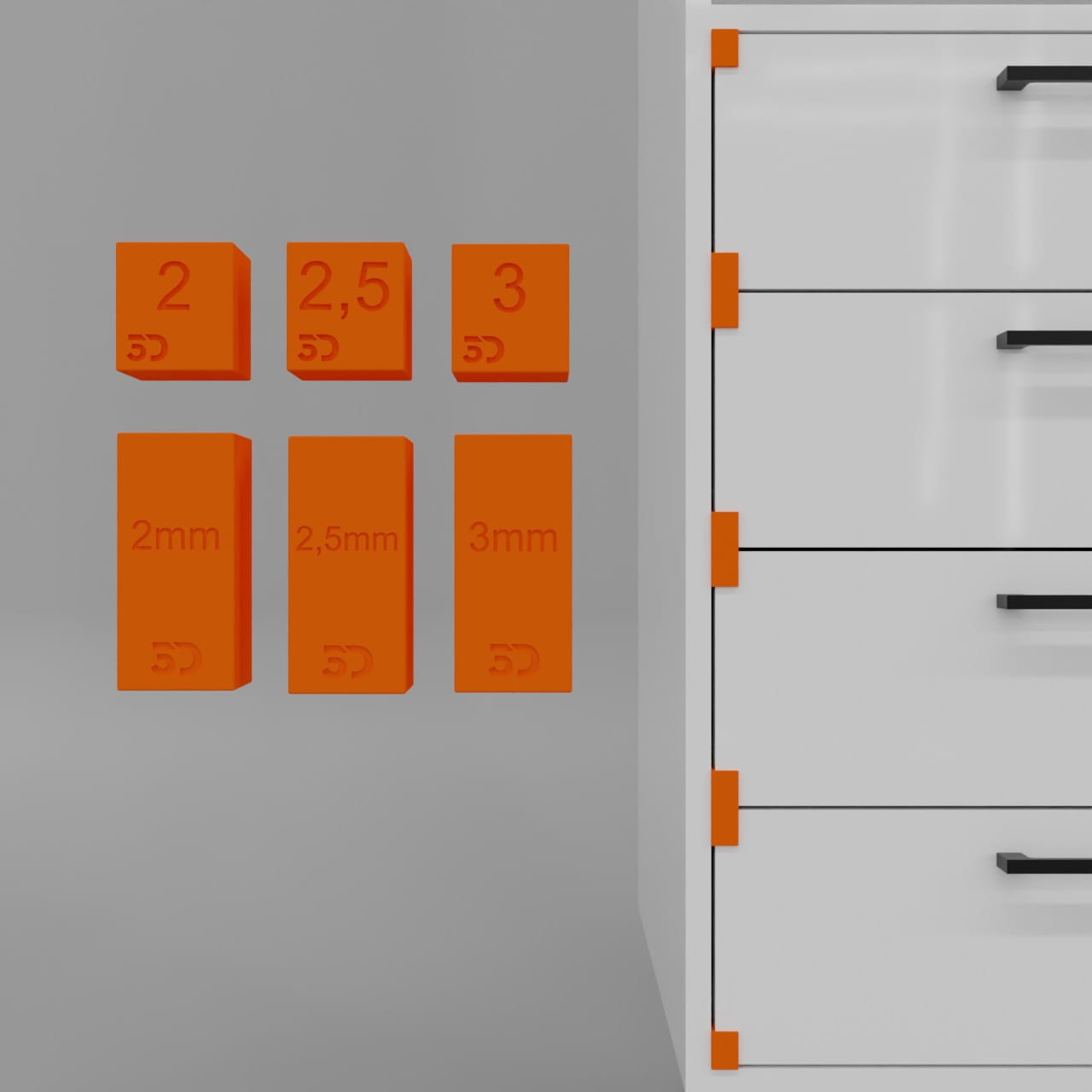 Trzy rodzaje grubości szczelin między szufladami: 2mm, 2.5mm, 3mm.